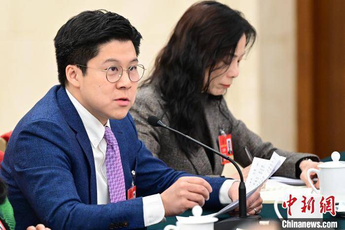 3月7日,十四届全国人大三次会议香港代表团在人民大会堂举行开放团组会议。港区全国人大代表、香港艺术发展局主席霍启刚在会上发言。中新社记者 田雨昊 摄