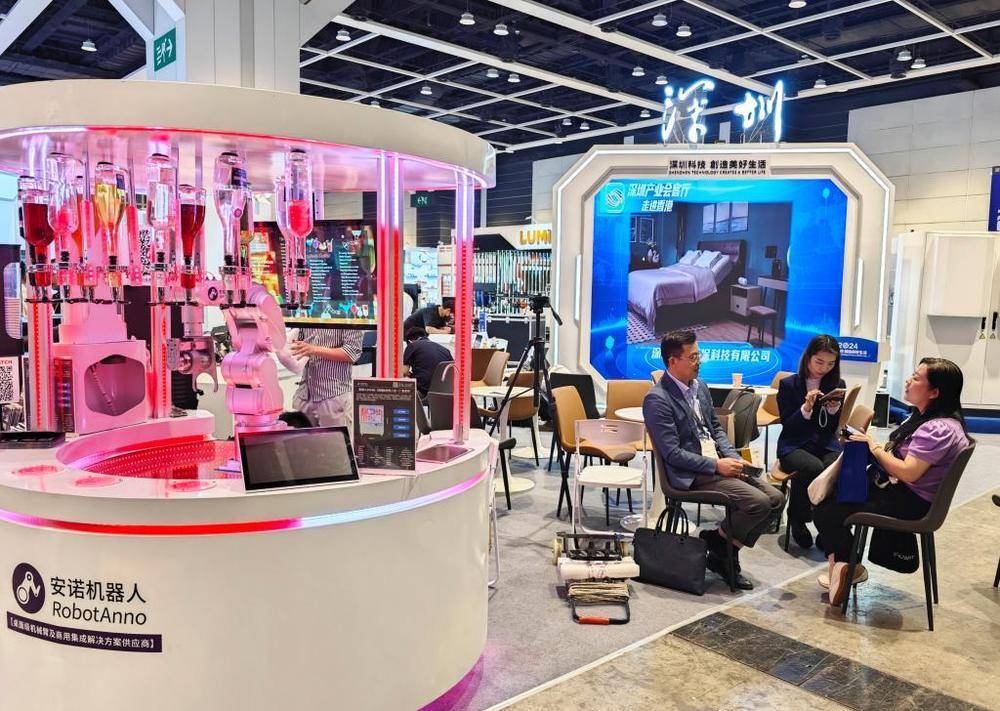 2024年4月14日拍摄的第二届香港国际创科展上的深圳企业展位。新华社记者 褚萌萌 摄